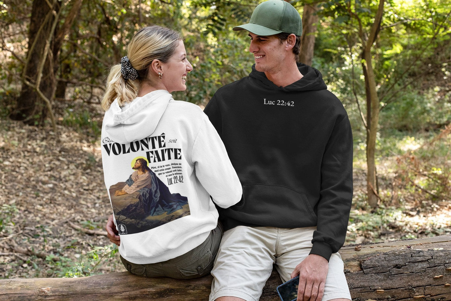 ✝️ Ce hoodie rend hommage à Luc 22:42, un verset d’une intensité spirituelle rare,
