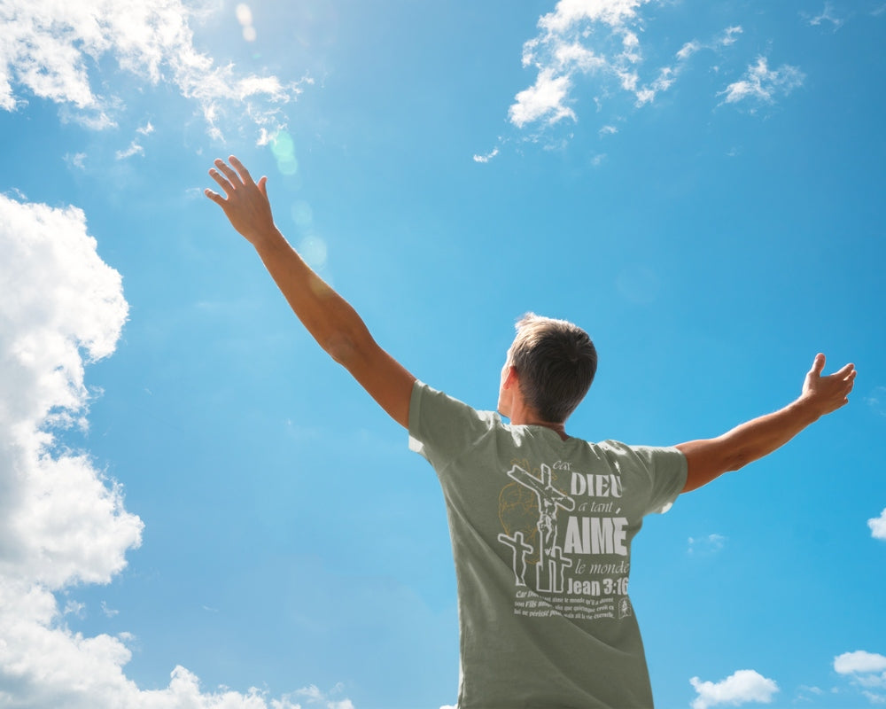 ✨ Ce n’est pas un simple t-shirt : c’est un acte de foi. En le portant, tu rappelles que l’amour du Christ dépasse toutes les frontières et que la grâce se vit au quotidien. Parce que c’est le cœur du message chrétien : le don suprême, la rédemption, la foi. Un verset que tout croyant porte dans son cœur, et que ce t-shirt te permet de partager avec le monde.